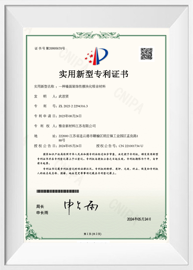 벽장식용 모듈형 흡음재 특허증